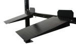 APlusLift HW-8SXLT 4-post car auto lift truck hoist package includes a caster kit with polyurethane wheels, a jack tray, three drip trays, two approach ramps, and a powercord. The caster kit allows customers to move the lift around the garage easily and can be installed or removed in minutes. The jack tray allows customers to use a jack to lift one end of the vehicle. The drip trays prevent fluid from the top vehicle from dripping onto the bottom vehicle. Optional sliding jacks are available for purchase.
