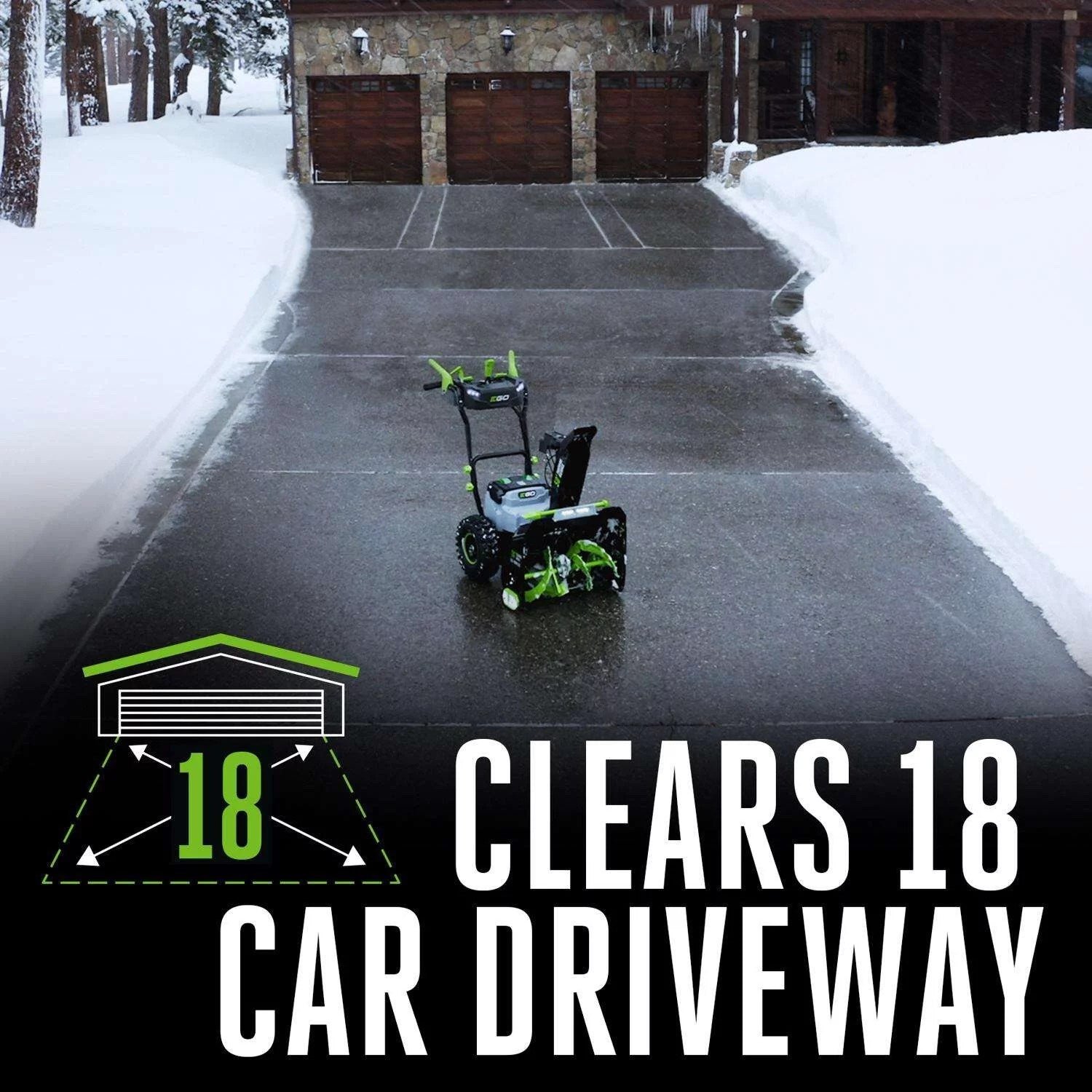• Clear an 18 car driveway with 8 inch of snow on a single charge