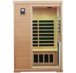 - HOME SAUNA – 2 Person Infrared Sauna in Natural Canadian Hemlock Wood, Internal Dimensions for 2 Persons, Applicable Height: 59-75 inches, Seat Weight 660 lbs (300 kg), Top Part Ceiling Vents, Suitable for Indoor Use.