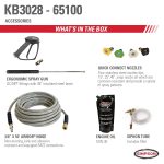 - 4 Quick connect nozzle tips: 15°, 25°, 40°, and soap to use for a variety of cleaning applications