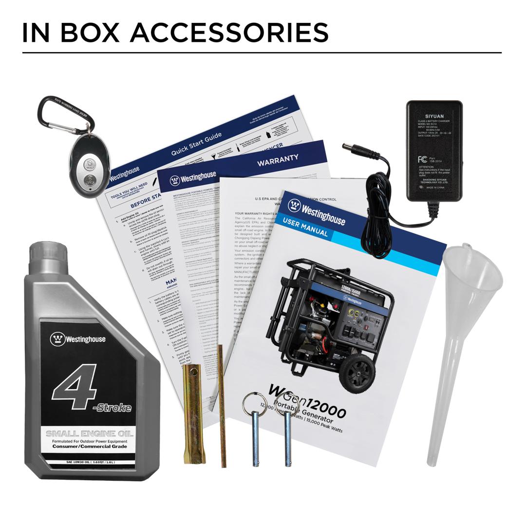 • All Westinghouse portable generators are functionally tested in the factory and may contain minimum residual oil and/or fuel odor